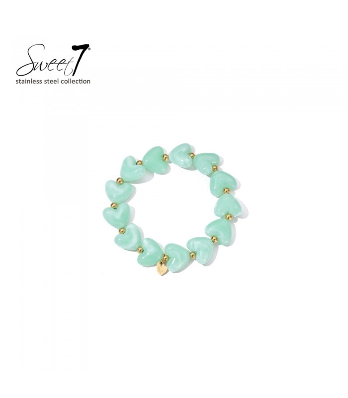 Stel je voor, een zonnige dag, lichte outfit en een detail dat alles laat stralen. Kan een armband dat echt doen? Ja. Deze kralen armband met mintgroene hartjes geeft elke look een frisse, speelse touch. De zachte kleur en goudkleurige accenten maken deze armband subtiel maar opvallend.